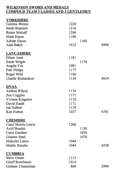 The opportunity was taken at this time to present the County Bars and Badges to others who had shot for the County throughout the year and this year those who shot at the Northern Counties Clout shoot, as part of a team were included. May I take this opportunity to thank all the archers whether they made the teams or not for their commitment to Lancashire and their abilities. I also thank Barry Collinson and Charlie Richardson, the two selectors for their work, which has paid dividends this year with our general results. WELL DONE TO ALL…….. Elaine Muncaster LAA Senior Team Manager